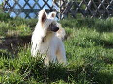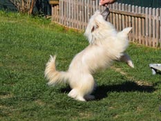 Er ist ein sehr anhänglicher und total verspielter kleiner Schwerenöter. Alysoun hat ihm die schönen Zeiten eines Rüden gezeigt, da warten wir gerade auf die Bescherung.