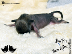 ineFire "Jean d′Arc" from Black Fairies. Die zweite Kämpferin, sie hatte es besonders schwer ist aber auf dem besten Wege. Geboren um 22:28 Uhr mit 121g verlor sie in den ersten Tagen sehr schnell an Gewicht auf sehr besorgliche 89g, sie hat aber mit Hilfe die 425g nach fast 3Wochen zufüttern erreicht.