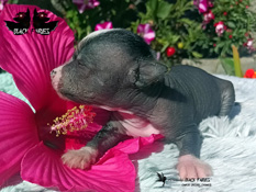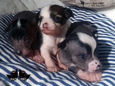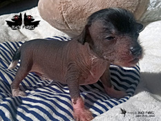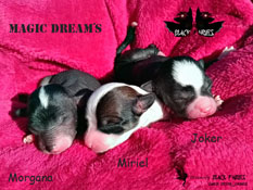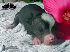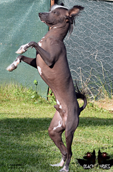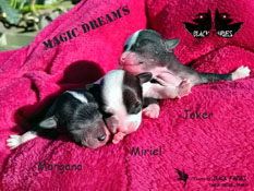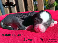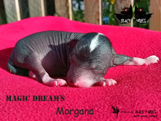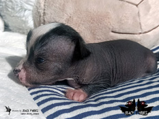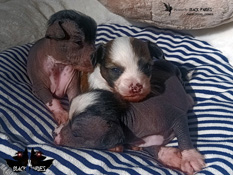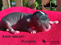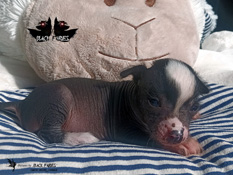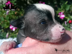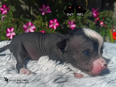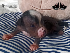 Hihi, alle dachten bei zwei ist Schluß. Aber sie haben die Rechnung ohne mich gemacht. Darf ich mich nun als dritte im Bunde vorstellen, ich bin das Wunschkind aller: Mädchen (Diva), hairless und schwarz/weiß.