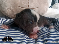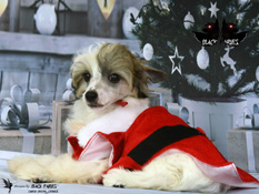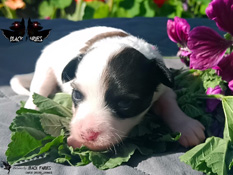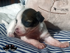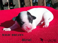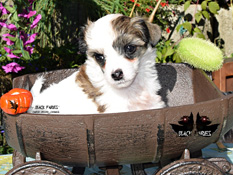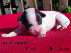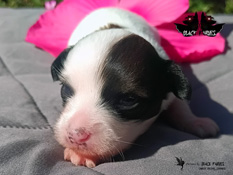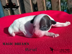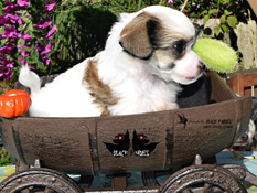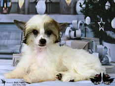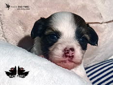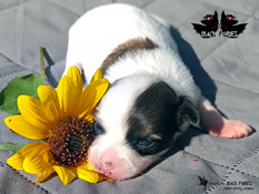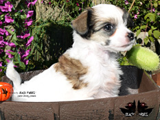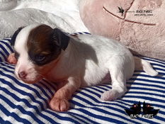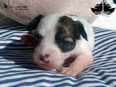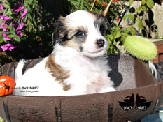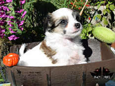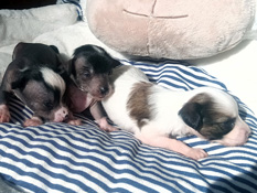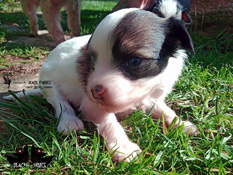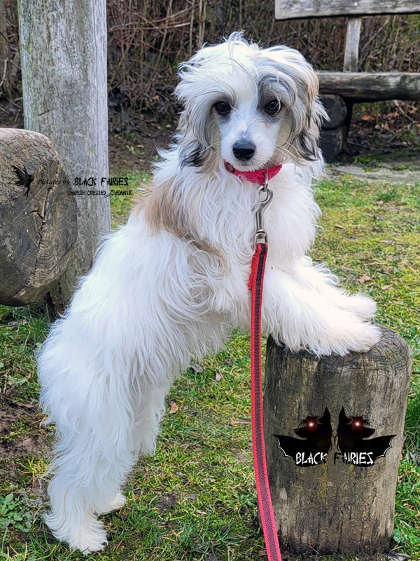 Und Mama sprach es werde ... hmm ... hell. Die braunen Flecken mussten aber noch sein, so ganz weiß kann ja jeder. Ich bin die Zweitgeborene und der einzige PowderPuff Welpe.