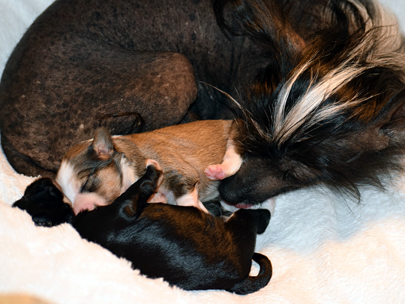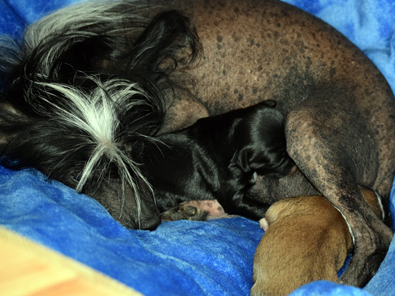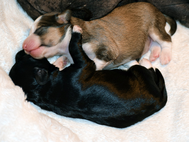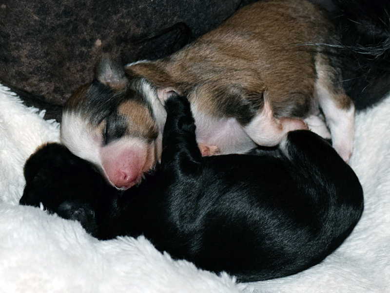 Noch liegen sie in der Wurfbox und beschäftigen ihre Mama so gut sie können. Sie nehmen stetig zu und sind mobil.