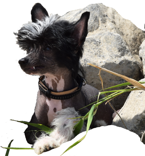 on allen exotischen Hunden ist einer der interessantesten der chinesische Schopfhund.Die Entstehungsgeschichte der Rasse reicht weit, sehr weit in vorgeschichtliche Zeiten zurück und liegt manchmal etwas im Dunkeln. Vor Jahrtausenden entstand in Afrika aus einer Mutation (Änderung einzelner Erbmerkmale Foxi 3 Gen) ein haarloser Hund; so entstand der "Canis Africanis". an züchtete diese Hunde weiter. Vor langer Zeit kamen haarlose Hunde von Afrika nach China,von dort mit Teeschiffen nach Amerika. Die Frühgeschichte des Chinese Crested in Amerika ist schwer zu ergründen. chon während der Han-Dynastie (200 v. Chr. bis 200 n.Chr.) züchteten die Chinesen der Mandarinkasteaus dem haarlosen Hunting Dog (Jagdhund) den "Treasure House Guardian" (kostbarer Hüter des Hauses). Die Hunde passten in die Welt der schönen Dinge wie Porzellan, Seide und anmutige Frauen. Man züchtete diese Hunde mit großer Sorgfalt und Liebe. er chinesische Schopfhund gehört zu den Kleinsthunderassen, er ist ein Toy,mit einem durchschnittlichen Gewicht von 3-7 Kilogramm. Die ldealschulterhöhe sollte beim Rüden zwischen 28-33 cm und bei der Hündin 23-30 cm betragen. Er ist ein lebhafter, eleganter, schlanker, kleiner, graziöser Hund, etwa windspielgroß. Der Körper ist unbehaart, den edlen Kopf ziert ein Haarschopf, lang und seidig. Der ganz behaarte Kopf (all over head crest), anmutig wie bei einem Paradiesvogel oder auch die wallende Pferdemähne sind als Schönheitsattribut hochfavorisiert! Wir finden aber auch Kopfbehaarungen wie ein Bürstenhaarschnitt oder eine Punkerfrisur. An der Rutenspitze hat der Chinese Crested einen zepterähnlichen Federbusch und Socken an den Beinen. Es gibt aber auch gänzlich haarlose Hunde. Der Chinese Crested hat ein feines Knochengerüst. Die Haut fühlt sich angenehm weich und warm an. Die Hunde gewöhnen sich leicht an kühleres Klima. Sie benötigen zur Wärmeproduktion etwas mehr Futter, da sie das Futter schneller verbrennen. Spaziergänge bei trocknem Wetter schaden ihnen auch bei Temperaturen von 10 C°. nicht, so lange sie in Bewegung sind. Bemerkenswert sind die Pfoten, die sich deutlich von denen anderer Rassen unterscheiden. Ihre Hasenpfoten sind sehr viel beweglicher und gelenkiger. Sie können damit außerordentlich gut greifen und zufassen, fast wie kleine Affen, ja selbst ihren Besitzer fast zärtlich umarmen. ir unterscheiden den mehr eleganteren "Deer Type" (Rehtyp) und den etwas schwereren "Cobby Type".Schon die Azteken verehrten haarlose Hunde, schrieben ihnen magische Kräfte zu, z.B. die Fähigkeit Asthma, Arthritis oder Rheuma zu heilen. Haarlose Hunde sind sauber, gerucharm, fast ungezieferfrei. Sie benötigen wenig Pflegeaufwand, nur ab und zu mal ein Bad und eine Hautlotion. Es sind wohl die einzigen Hunde, die im Winter und im Sommer durch Sonneneinwirkung eine andere Farbe haben - hell im Winter und tiefdunkel im Sommer, sie besitzen in der Haut einen hohen Melaningehalt. Sehr attraktiv bei den Gefleckten, aber genau so reizvoll bei den Einfarbigen. Jede Farbe und Farbkombination ist zulässig. Die am häufigsten vorkommenden Farben sind schwarz, braun, blau, lavendel und mahagonifarben, gefleckt (großflächig oder leopardgefleckt) oder einfarbig. er Chinese Crested ist ein bezaubernder Zwerghund, sein Wesen und überhaupt seine Charakter-eigenschaften überzeugen. Er ist intelligent und zeigt ein unendliches Bedürfnis nach Liebe; es ist ihre Persönlichkeit, die ihre stolzen Besitzer so glücklich macht. Die Rasse wird immer eine Rarität bleiben - vielleicht auch gut so. Der Chinese Crested ist kein Kläffer, aber dennoch wachsam. Das Gen, welches die Haarlosigkeit verursachen, beeinflusst auch die Zahnentwicklung, so fehlen den Haarlosen oft Prämolaren. Es gibt die behaarte Variante, die ein vollständiges Gebiss hat. Nackthunde sind praktisch immer spalterbig, d.h., dass sie in ihrem Erbgut ein Gen für Haarlosigkeit und ein Gen für die Ausbildung eines vollen Haarkleides haben. In ihren Würfen fallen deshalb immer vollbehaarte Hunde, die als Powder Puff (Puderquaste) bei der FCI und dem ACW ihren eigenen Standard haben. Es gibt sie in langseidenhaarig (daher der Name) aber auch rauh- oder kurzhaarig. Unter Annahme der Dominanz des Nacktgens bringen die Powder Puffs selten haarlose Welpen. iese quirligen kleinen Kerle haben ihren eigenen Liebhaberkreis. In der Zucht der Haarlosen mussman immer wieder Powder Puffs einkreuzen, da es ansonsten Letal- (Tot-) Geburten gibt. Außerdem benötigt man die behaarte Variante für die prächtigen Haarschöpfe. Noch eins, "vertätscheln" Sie nie ihren Chinese Crested, lassen Sie ihn auch im Winter draußen ohne Mantel laufen, da er sonst empfindlich wird. Sie werden schnell sehen, was für einen unkomplizierten, problemlosen, vitalen, kleinen, lustigen Burschen Sie sich da in Haus geholt haben. KURZER GESCHICHTLICHER ABRISS: Den Chinesischen Schopfhund gibt es in zwei Variationen, der Haarlosen und der Powder Puff. Die haarlose Varietät hat einen Schopf von Haar am Kopf, welches zum Teil bis zum Hals herunter reicht, "Socken", welche ihre Zehen bedecken und eine Fahne an der Rute. Der Rest des Körpers ist, wie schon der Name besagt, haarlos. Die "Powder Puff" Varietät ist komplett mit einem Schleier von langem weichen Haar bedeckt. Obwohl es schwierig ist ihre Herkunft genau zu benennen, sagt man dass sie zu dem Besitz der Familien der Han Dynastie von China gehörten. Die Haarlosen Schopfhunde wurden zu dieser Zeit als Wächter der Schätze des Hauses und -in einer größeren, schwereren Art- als Jagdhund gezüchtet. Während 1885 und 1926 sah man sie auf Ausstellungen in Amerika aber dann kaum noch für fast fünfzig Jahre. ALLGEMEINES ERSCHEINUNGSBILD: Ein kleiner, lebhafter und anmutiger Hund, Knochen mittelstark bis leicht. Körper ebenmäßig, entweder haarlos, mit Haarwuchs an den Pfoten, am Kopf und an der Rute oder leicht mit einem weichen Haarschleier eingehüllt. Es gibt zwei deutlic